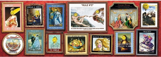 Panoramatické puzzle s veselým motívom SMILEY Galéria ponúknu hodiny pokojnej zábavy pre dospelých aj staršie deti. Formát panorama sa po zložení krásne vyníma v interiéri a vďaka kvalitnej tlači vyniknú všetky detaily.