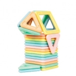 Sada obsahuje 18 štvorcov a 12 trojuholníkov v pastelových farbách, ktoré umožňujú stavbu rozmanitých modelov.