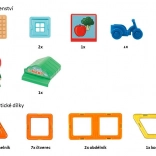 So stavebnicou Magformers Mestečko Tržište môžete stavať rôzne architektonické stavby podľa vlastnej fantázie. Obsahuje 14 magnetických tvarov a 8 funkčných doplnkov, vrátane malej predavačky, ktoré umožňujú tvoriť poloodkryté prieřezy, kde sú z jednej strany viditeľné vonkajšie kontúry stavby a z druhej interiérové riešenia.