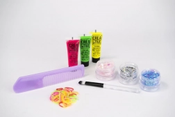 Všetko je navrhnuté na bezpečné a rýchle použitie pod dohľadom dospelých. Pomocou štetca a hrebeňa dosiahnete presné nanesenie, gumičky pomôžu s tvorbou účesov a trblietky dodajú finálny efekt. Ideálne ako darček pre malé kaderníčky a milovníkov kreativity.