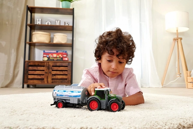 Na farme a pri práci na poli je potrebných mnoho nástrojov, vrátane traktora s veľkým prívesom na mlieko. Profesionálnu prepravu mlieka zabezpečíte s prepravníkom mlieka Fendt od Dickie Toys! Oficiálne licencovaný traktor Fendt sa osvedčí na domácej farme alebo vonku, napr. na záhrade. Poľnohospodárske vozidlo s prívesom je zámienkou na rozprávanie o ťažkej práci farmárov a k jej oceneniu, navyše podnecuje detskú predstavivosť a zároveň precvičuje motoriku ich malých ručičiek. Veľké a široké pneumatiky zabezpečujú dostatočnú priľnavosť vozidla, takže sa traktor neodchyľuje od svojej trasy. Bohaté herné funkcie boli obohatené o svetelné a zvukové efekty, vďaka ktorým je hra realistickejšia. Pohyblivé časti, ako je skladacia základňa prívesu na mlieko, navyše podporujú pohlcujúcu hru. Farebné detaily, ako sú tematické samolepky a skladací stojan, rovnako ako transparent na prívese a pripojený rebrík, zabezpečujú autentickú hru v detskej izbe. Vďaka 2 batériám AAA, ktoré sú súčasťou balenia, môžete začať hrať hneď po rozbalení! Poskytne mimoriadnu zábavu deťom aj ich opatrovateľom. Zároveň sa pri hre stimulujú motorické zručnosti a prebúdza sa detská vynaliezavosť a zvedavosť o okolnom svete. Objavte pôžitky z farmárčenia a práce na farme s poľnohospodárskymi vozidlami zo série FARM od renomovanej značky vozidiel Dickie Toys! Traktor Fendt s prívesom na mlieko je osvedčený darček k narodeninám, Vianociam, Dňu detí a ďalším príležitostiam pre deti od 3 rokov.