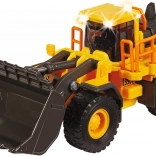 Licencovaný nakladač VOLVO bez motora so svetelnou a zvukovou funkciou. Kabína je vyrobená z kovu. Mäkké gumové pneumatiky si ľahko poradia s náročným povrchom na stavenisku. Pohyblivé prvky: otváracie zadné dvere, lyžica a kabína, vďaka riadeniu môže vozidlo ľahko zatáčať doprava a doľava. Dĺžka: 21 cm.