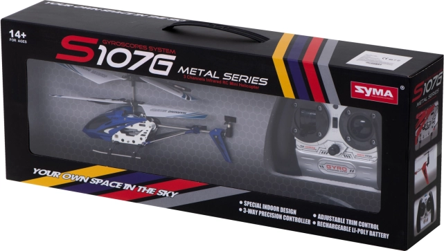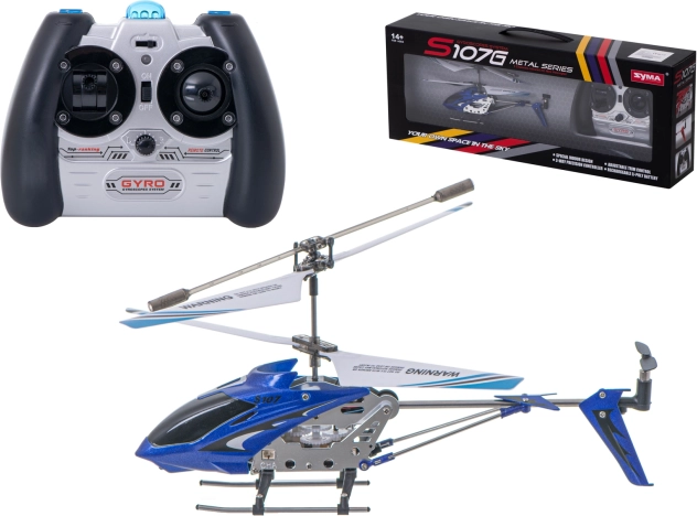 Ľahký a odolný RC vrtuľník SYMA S107G s kovovým rámom je ideálny na domáce lietanie. Stabilné riadenie zabezpečuje živoskop GYRO a dvojica protibežných rotorov (Co-axial). Ponúka 3,5-kanálové ovládanie, dolet až 15 m a let 7–10 minút na jedno nabitie.