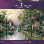 Užite si upokojujúce skladanie s puzzle 1000 dielikov od značky SCHMIDT s malebným motívom „Ráno v rodnom mestečku“ od Thomasa Kinkadea. Kvalitná tlač, presné výrezy a rozmer po zostavení 69,3 × 49,3 cm poteší každého milovníka puzzle.