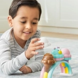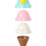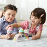 Súprava zahŕňa 5 kopčekov, špeciálny kopček jednorožca, 3 kornúty a dúhový stojan – všetko, čo deti potrebujú na servírovanie zmrzliny.