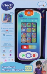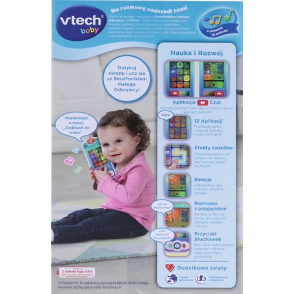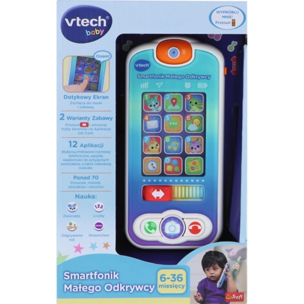 Interaktívny detský smartphone Malého objaviteľa podporuje prirodzenú zvedavosť detí. Imitované aplikácie umožnia „volať“ priateľským zvieratkám, zistiť „predpoveď počasia“ a prehrať veselé melódie. Dotykový displej uľahčuje učenie prvých slov, čísel a tvarov zábavnou formou.