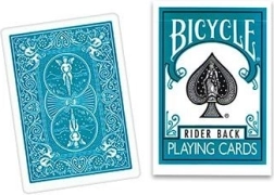 Karty Bicycle patria medzi najuznávanejšie na svete už od roku 1885. Jedinečný papier a špeciálny povrch Air‑Cushion Finish zabezpečujú hladký sklz, ľahké miešanie a dlhšiu životnosť. Nové prevedenie s tyrkysovým rubom aj krabičkou zaujme na prvý pohľad a výborne sa hodí na vizuálne efekty.