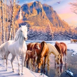 Tento pôvabný motív zachytáva pokojnú zimnú scenériu s koňmi pri potoku a horským panorámom. Puzzle s 500 dielikmi ponúkajú vyváženú výzvu pre začiatočníkov aj pokročilejších skladateľov a vďaka kvalitným materiálom sa výborne skladajú aj opakovane.