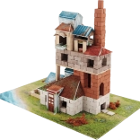 - Skutočné pálené tehly, pravé drevo, kartónové prvky, dekoratívna tráva a červený mach