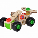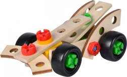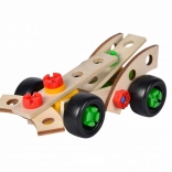 3 možnosti zostavenia: monopost Formuly 1 a 2 rôzne pretekárske autá. Vyrobené z bukového dreva, plastové diely, FSC 100, FSC 100.