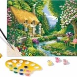 Sada CreArt ponúka všetko, čo potrebujete na to, aby ste bez skúseností namaľovali pôsobivý obraz s motívom pokojného domčeka pri rieke. Vďaka predtlačeným farebným hraniciam namiesto čiernych kontúr budú okraje a prechody pôsobiť prirodzenejšie a výsledný obraz získa ešte profesionálnejší vzhľad.