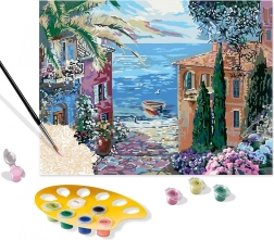 Preneste sa na slnkom zaliate pobrežie so stredomorskou krajinou CreArt z prémiovej série B. Bohatá paleta farieb a premyslené spracovanie motívu z nej robia výrazný doplnok obývacej izby, spálne či pracovne. Vhodné pre deti od 12 rokov aj dospelých, ktorí ocenia estetiku a relax pri tvorení aj vystavení hotového diela.