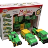 Jednotlivé diely sa vďaka magnetom rýchlo a pevne spoja. Deti ľahko prestavajú traktor, kombajn aj nákladiak podľa vlastnej fantázie.
