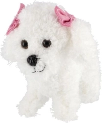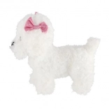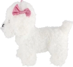 Roztomilý biely plyšový psík s veľkosťou 21 cm je ideálny prvý kamarát pre bábätká aj staršie deti. Je vyrobený z extra mäkkého a hebkého plyšu, má jemné ružové mašličky na uškách a láka k mojkaniu od rána do večera. Perfektný na pokojné zaspávanie a upokojujúce objatie kedykoľvek počas dňa. Vhodné už od 0 mesiacov.