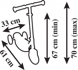 - Prispôsobenie dieťaťu: výškovo nastaviteľné riadidlá (cca 67–70 cm).