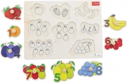 Drevená skladačka s motívom ovocia je skvelou voľbou pre prvé puzzle. Farebné ilustrácie zaujmú deti na prvý pohľad a drevené úchyty uľahčia manipuláciu každému malému prieskumníkovi. Podkladová doska s čiernobielym obrysom jednotlivých tvarov napovie, kam ktorý dielik patrí, a tým podporuje samostatnosť a sebadôveru pri hre.