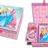 Objavte čarovný darčekový set v dekoratívnej krabičke s motívom Princess. Dve bočné poličky sa ľahko vyklápajú a pod nimi sa skrýva denníček na tajné priania a zážitky. Perfektný na ukladanie drobností aj každodenné písanie.