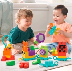 Stavebnica obsahuje 30 veľkých kociek, z toho niekoľko špeciálnych dielov, ktoré sú navrhnuté tak, aby stimulovali deti vo veku od 1 do 3 rokov. Zahŕňa osem senzorických funkcií pre rozvoj hmatového, zrakového a sluchového vnímania. Kocky sú kompatibilné so všetkými hračkami Mega Bloks, čo umožňuje rozširovanie možností herných aktivít.