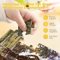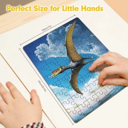 Obojstranné puzzle vo vajci z kolekcie DINO EGGs Collection od CubicFun ponúka dvojitú zábavu. Na jednej strane nájdete ilustráciu pterosaura, zatiaľ čo na druhej abstraktný vzor s dinosauřími fosíliami.