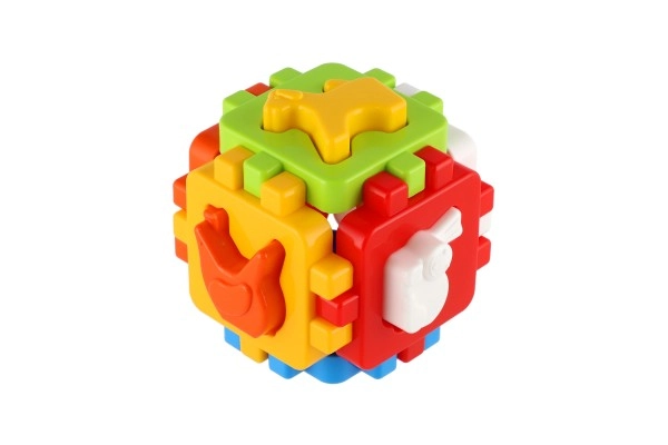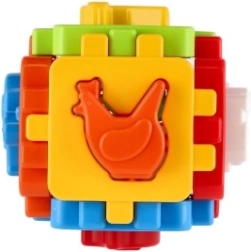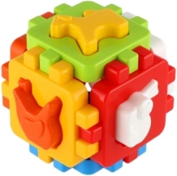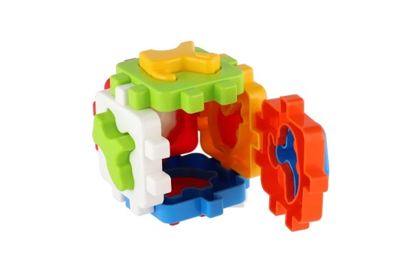 Táto klasická vkladačka v mini verzii má šesť farebných strán so spojovacími ozubenými okrajmi, ktoré možno ľahko zostaviť do kocky. Súčasťou sú tvary na vkladanie aj skladacie panely, takže dieťa môže kocku rozoberať a znovu skladať, čím rozvíja koordináciu ruka–oko a priestorovú predstavivosť.