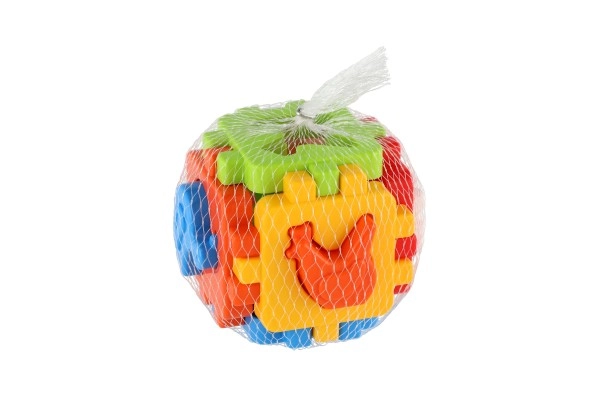 Šesť panelov sa spája ozubenými okrajmi do pevnej kocky. Dieťa trénuje jemnú motoriku a trpezlivosť pri opakovanom skladaní.