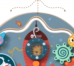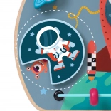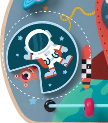Raketa s planétami a hviezdami prirodzene podnecuje zvedavosť a povzbudzuje deti k objavovaniu jednotlivých prvkov – od labyrintu po otáčacie kolieska.