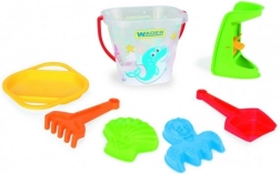 Letná zábava na pláži aj v pieskovisku so súpravou na piesok Akvárium so 7 dielmi. Obsahuje lopatku, hrabličky, 2 formičky, sito, mlynček na piesok alebo kanvičku a priehľadné vedro s veselou grafikou morských zvierat. Vyrobené z bezpečných a odolných materiálov, grafika IML odolá vode a slnku. Produkt je dodaný náhodne, cena je za 1 súpravu.