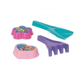 - Kompletná výbava: lopatka, hrablíky a 2 formičky