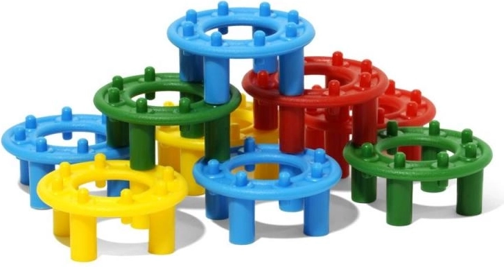 Objavte zábavnú stavebnicu pre najmenších, ktorá rozvíja jemnú motoriku, koordináciu oko–ruka a učenie základných farieb. Balenie obsahuje 96 kompatibilných krúžkov v štyroch výrazných farbách, ideálne pre deti od 12 mesiacov.