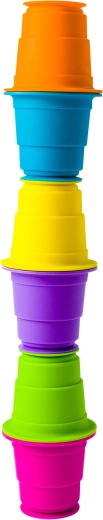 Poháriky rôznych veľkostí možno skladať do veže alebo vkladať do seba. Deti si trénujú jemnú motoriku, koordináciu oko–ruka a logické uvažovanie.