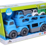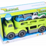 Hľadáte spôsob, ako jednoducho a efektívne prepravovať autíčka? Tento robustný ťahač vám to umožní! Meria 30 cm, čo poskytuje dostatok priestoru na umiestnenie až troch autíčok, ktoré sú súčasťou balenia. Ťahač je k dispozícii v modrej a zelenej variante, takže si každý príde na svoje.