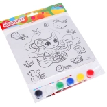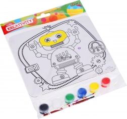 Kreatívna súprava pre deti s obrázkom na vymaľovanie, farbami a samolepiacimi kamienkami, ktorá stimuluje kreativitu a zábavné učenie.