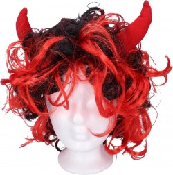 Štýlová karnevalová parochňa s červenými rohmi a výraznými červenými vlasmi, medzi ktorými presvitajú aj čierne pramene. Ideálna pre detské aj dospelácke kostýmy čerta. Výrazný vzhľad, ľahké nasadenie a skvelý doplnok na Mikuláša, karneval aj párty. Vhodné od 6 rokov.