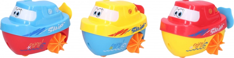 Táto farebná plastová loďka prináša deťom radosť z vodných hier. Vďaka jednoduchému naťahovaciemu mechanizmu sa sama pohybuje po hladine a motivuje deti k objavovaniu a hre vo vode. Vhodná do vane aj bazéna, poteší svojím hravým vzhľadom s veľkými očami.