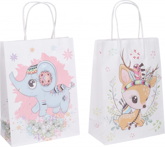 Stredná darčeková taška 19x9,5x26 cm s detskými motívmi v štyroch variantoch, ideálna pre menšie darčeky.