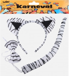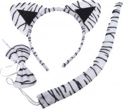 Hľadáte jednoduchý a efektný kostým pre deti? Táto sada bieleho tigra je perfektná voľba. Vďaka pohodlnej čelenke s uškami, ľahkému chvostu a štýlovému motýliku vytvoríte behom okamihu rozkošný zvierací kostým. Skvelé na karneval, oslavy aj tematické fotenie.