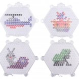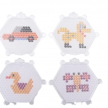 Hexagonálne podložky s výstupkami držia koráliky na mieste a pomáhajú vytvoriť detailné motívy ako auto, psík, káčatko či motýľ.