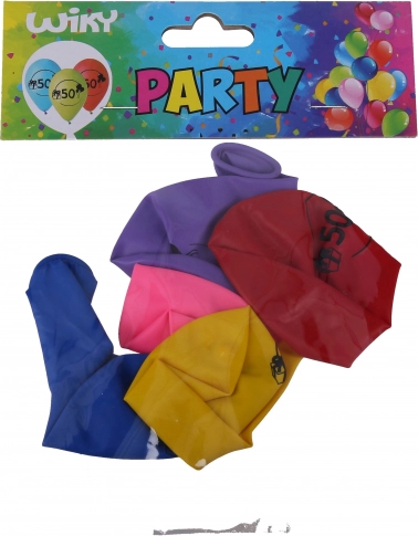 Dodajte svojej oslave 50. narodenín či výročia výrazný akcent. Balóny s priemerom 30 cm s potlačou 50 v atraktívnom mixe farieb sa stanú neprehliadnuteľnou súčasťou výzdoby a vytvoria slávnostnú atmosféru v priebehu chvíľky.