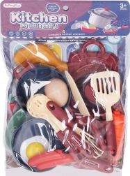 Objavte kompletný kuchynský set pre deti, ktorý prináša všetko potrebné na hravú prípravu obľúbených dobrôt. Súčasťou je detský varič, praktický riad a bezpečné plastové potraviny, vďaka ktorým si deti môžu vyskúšať rolu kuchára v domácej kuchynke.