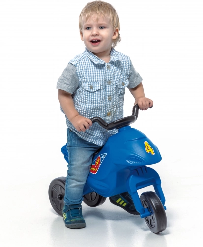 Ľahké trojkolesové odrážadlo SUPER BIKE mini v modrej farbe na prvé jazdy. Ponúka stabilitu vďaka 3 kolesám, kompaktné rozmery 57×28×41 cm a nosnosť 25 kg.