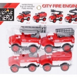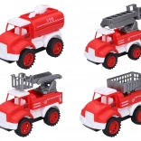 Táto sada obsahuje štyri červené hasičské autíčka s dĺžkou 10,5 cm, každé predstavuje iný typ hasičského vozidla: