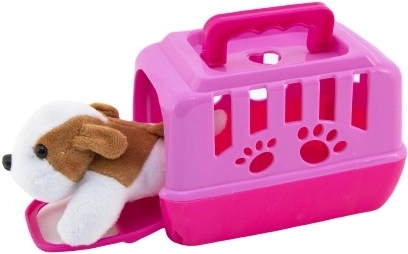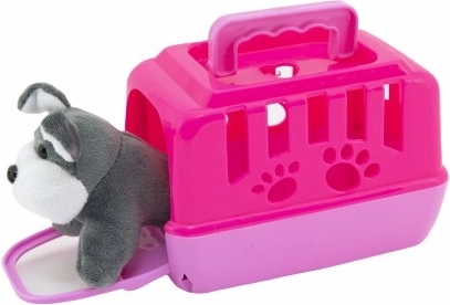 Táto sada kombinuje hebkého plyšového psíka a ľahký plastový box s vetracími otvormi a madlom na jednoduché prenášanie. Deti sa môžu hrať na starostlivosť o zvieratko, prevážať ho na výlety aj ukladať spať – to všetko zábavnou, bezpečnou formou.