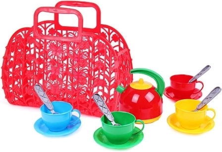 Farebná detská čajová sada je ideálna pre malé gazdinky! Táto sada obsahuje všetko potrebné na usporiadanie čajových posedení a je uložená v praktickej plastovej taške, ktorá zabraňuje strate jednotlivých dielov.