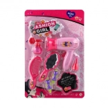 Sada obsahuje sedem farebne zladených doplnkov, vrátane ružového fénu a ďalších nevyhnutností pre tvorivé a bezpečné hranie. Výrobky sú vyrobené z kvalitného plastu, ktorý je odolný a bezpečný pre deti od troch rokov.
