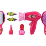 Sada obsahuje všetky potrebné nástroje pre malú stylistku, vrátane fénu a krásnych doplnkov pre zábavné kadernícke aktivity.