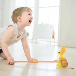 Táto krásna drevená kačička značky Classic World je perfektná hračka pre deti už od 12 mesiacov. Pri pohybe klapká nožičkami o podlahu, čo v dieťati vyvoláva radostný smiech. Vďaka tichým kolesám hračka neruší ostatných členov domácnosti.