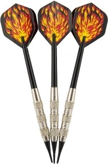 Užite si zábavné hádzanie so sadou šípok s plastovým hrotom, ktoré sú vhodné na domáce použitie a rekreačné hranie. Ľahká konštrukcia umožňuje pohodlný úchop a stabilný let, dizajn s plameňmi dodáva šípkam atraktívny vzhľad.