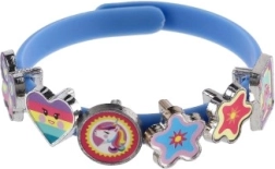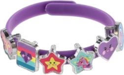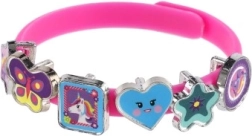 Objav svet fantázie s veselou sadou na výrobu náramkov s témou jednorožcov. V balení nájdeš tri pružné náramky v farbách ružová, modrá a fialová a osemnásť farebných príveskov v tvare hviezdičiek, srdiečok, motýlikov či postavičiek. Každý deň si môžeš vytvoriť iný štýl – od jemného až po skutočne žiarivý.