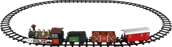 Balenie obsahuje 8 ks koľají, čo umožňuje vytvoriť okruh o veľkosti 107 cm. Trať tvorí 6 ks zátačiek a 2 ks rovných koľají. Pre prevádzku potrebujete 2 x AA batérie do lokomotívy (nie sú súčasťou balenia).