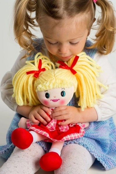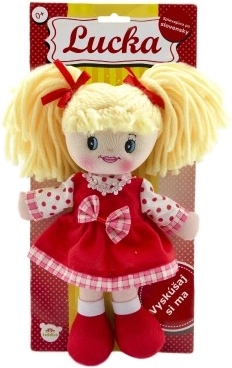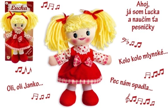 Roztomilá handrová bábika Lucka s veľkosťou 30 cm po stlačení bruška rozpráva a spieva obľúbené slovenské pesničky. Ideálna ako prvá kamarátka pre najmenších, s mäkkým telíčkom a jemným prevedením. Slovensky spievajúca bábika, mäkká plyšová hračka a vhodná od narodenia na bezpečné mojkanie aj raný rozvoj zmyslov.